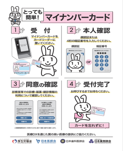オンライン資格確認により取得した診療情報・薬剤情報を実際に活用可能な体制を整備し、また、電子処方箋及び電子カルテ情報共有ービスを導入し、質の高い医療を提供するため医療DXに対応しています。